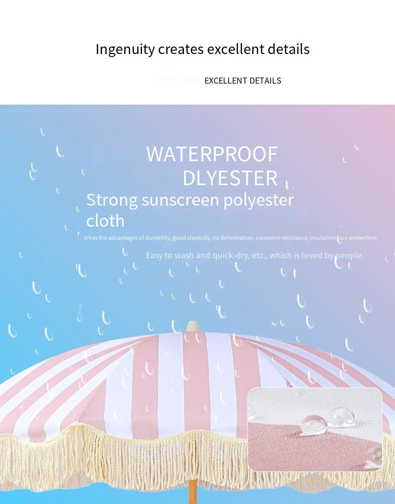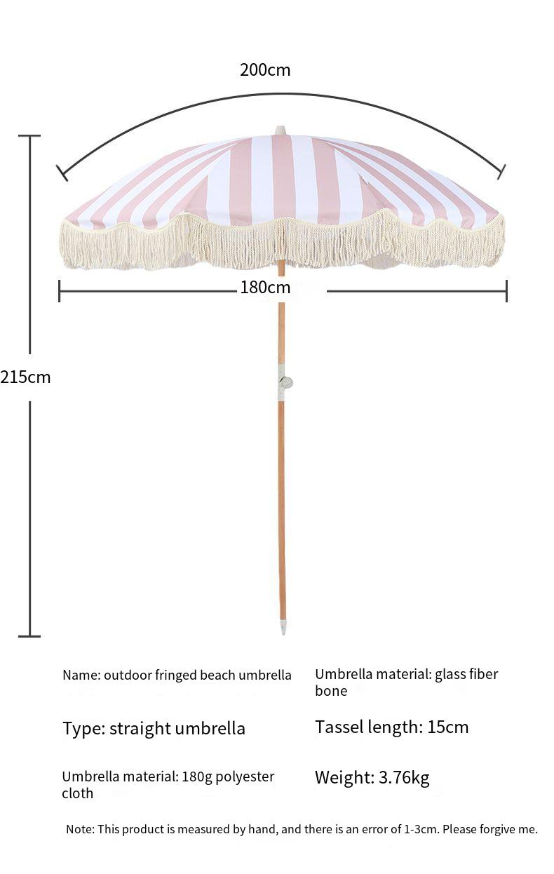 Dia 1.8m Striped Sun Parasol Umbrella Outdoor Garden Beach Umbrella with Fringe Retro Large beech wooden Tassel Pool Patio