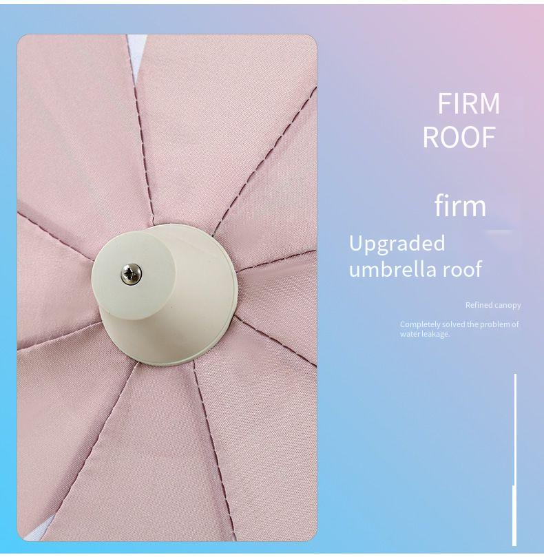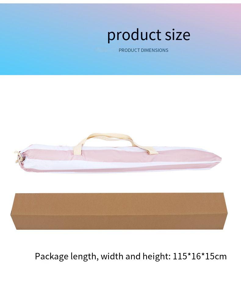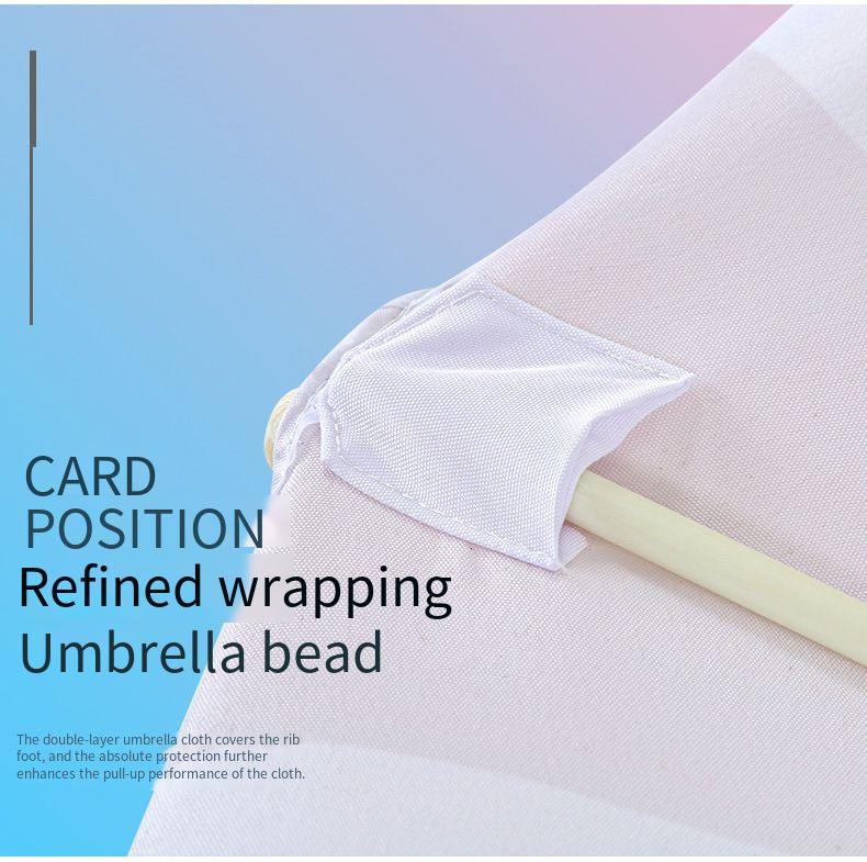 | Frame | –Straight,hand open,32/32mm beech wooden shaft,round fiberglass long ribs and supporter. –Fiberglass frame,Fixed position(Without tilt)ABS safe runner and plastic button. |