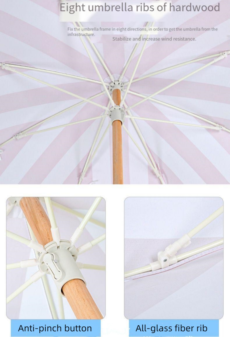 - HEAVY DUTY FRAME – Our parasols each have 8 fixed fibre ribs that provide structural support and stability. Its centre bar is made of solid wood and keeps it upright even on windy days.