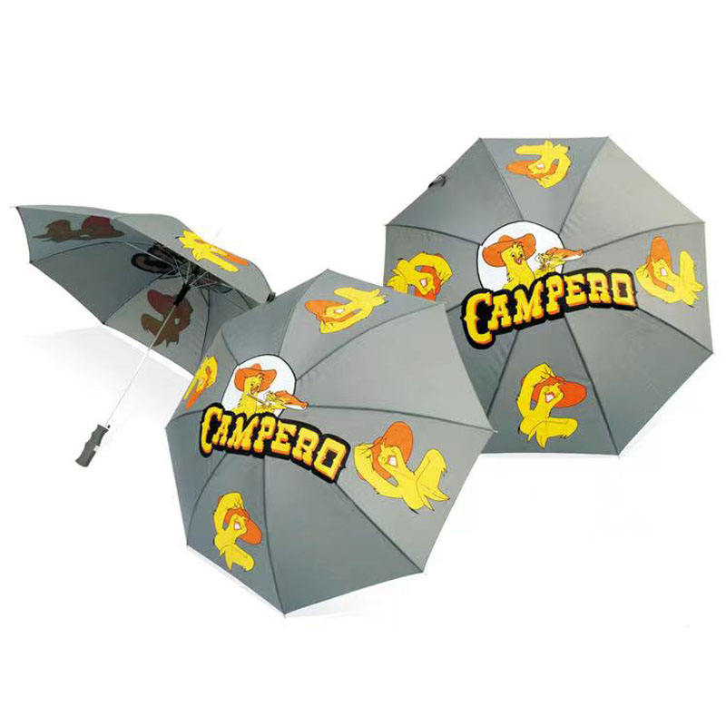 Looking for promotional umbrella manufacturers? This automatic 103cm straight umbrella is designed for corporate branding with high-quality overprinting of the Pollo Campero Chicken logo. Built with a durable 35T metal stick, it’s perfect for advertising, giveaways, and marketing campaigns. Work with us to design your own umbrella and create your own logo free for a customized promotional solution!