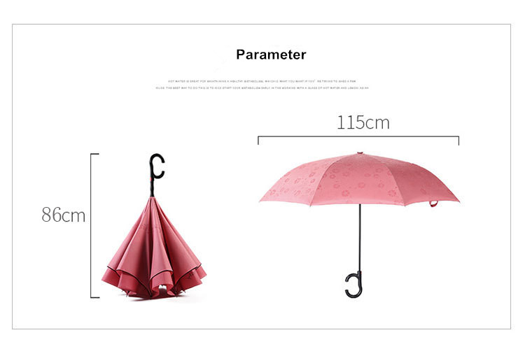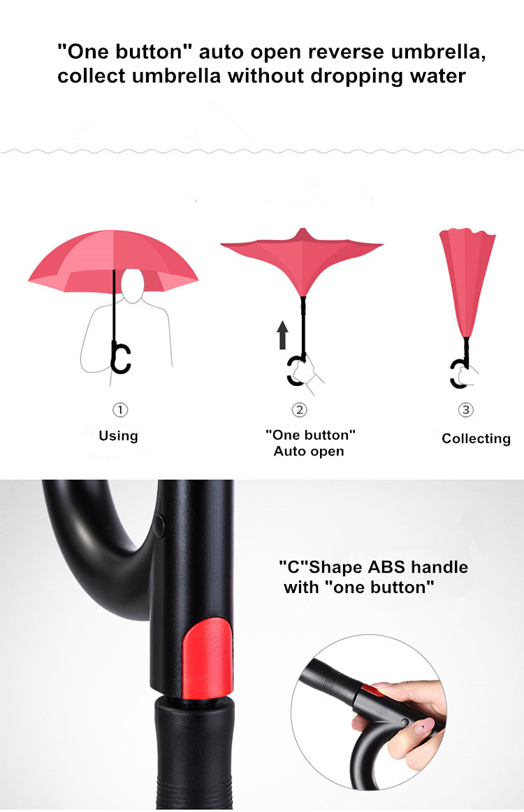 | Item | 23”*8K C-Hook Reverse Inverted C handle Water Changing Magic Car Umbrella |