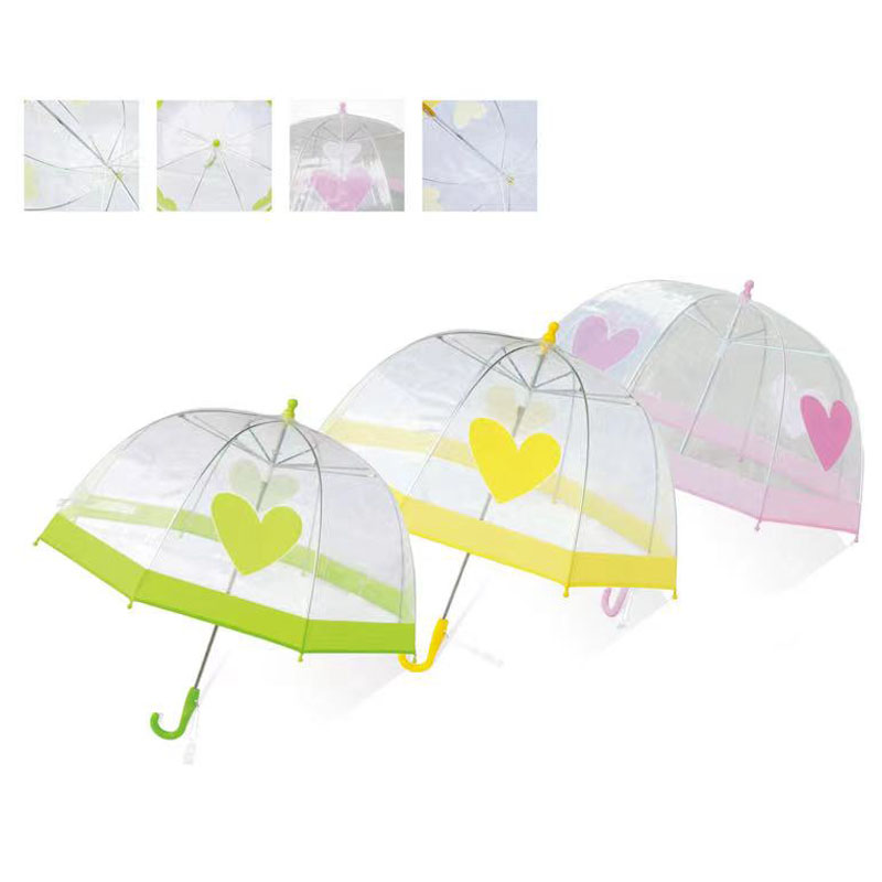 Wholesale Kids Transparent Dome Umbrella with Heart Print – Auto Open POE Bubble Umbrella for Children